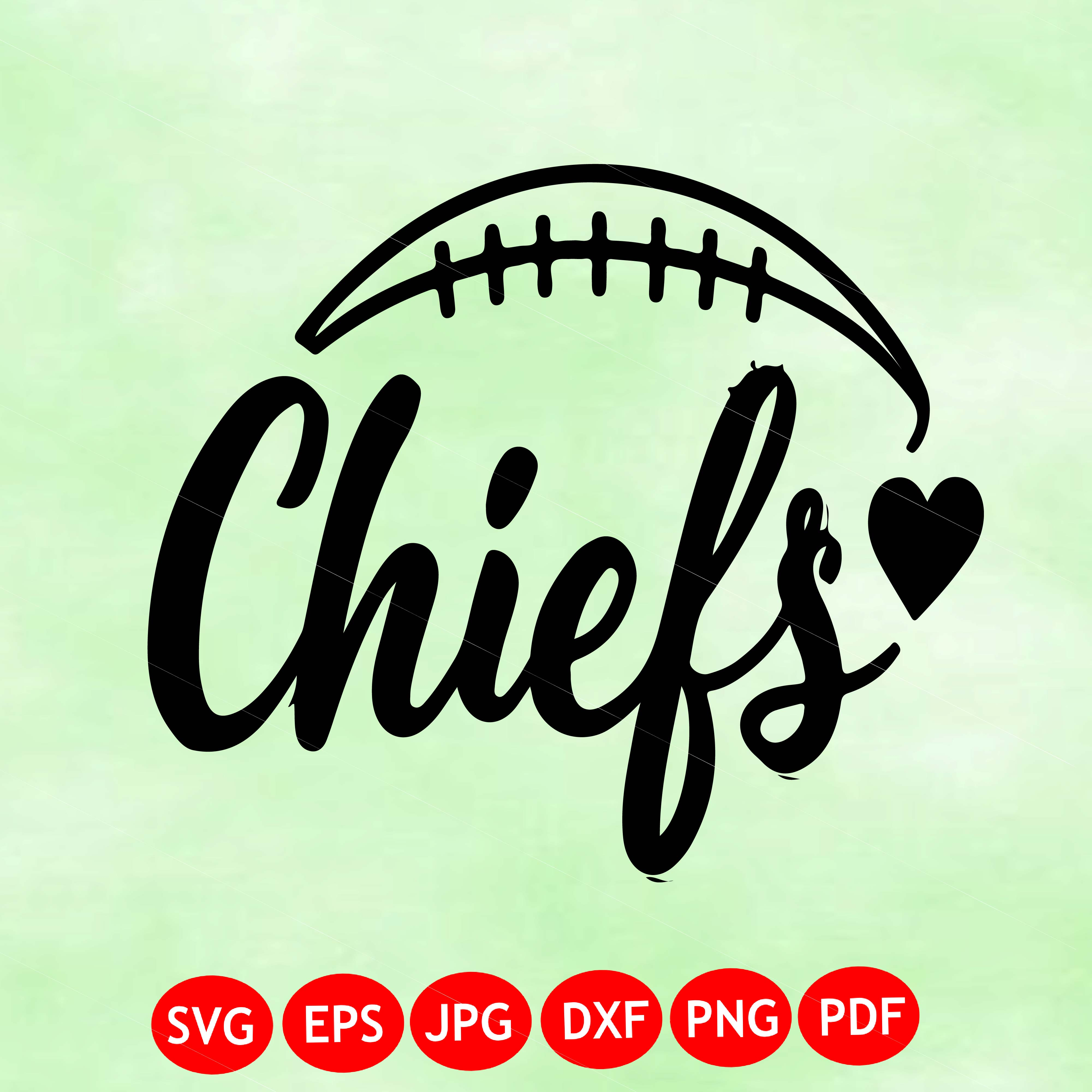 Sports Clipart: Black Script "Chiefs" Team Name Cutout of Football Silhouette - Digital Download svg png dxf pdf