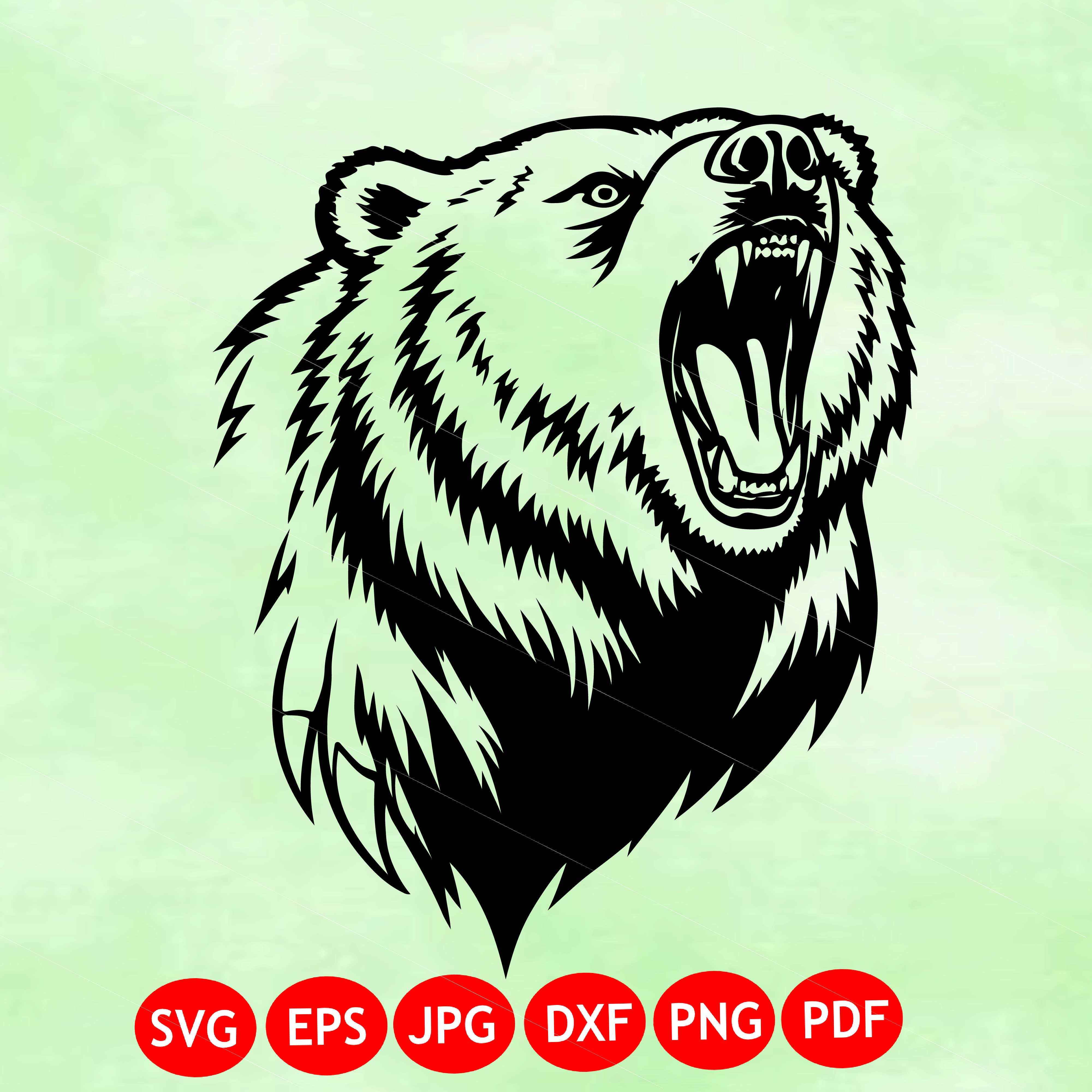 Angry Grizzly Bear Head SVG – Hunting Clip Art (Digital Download)