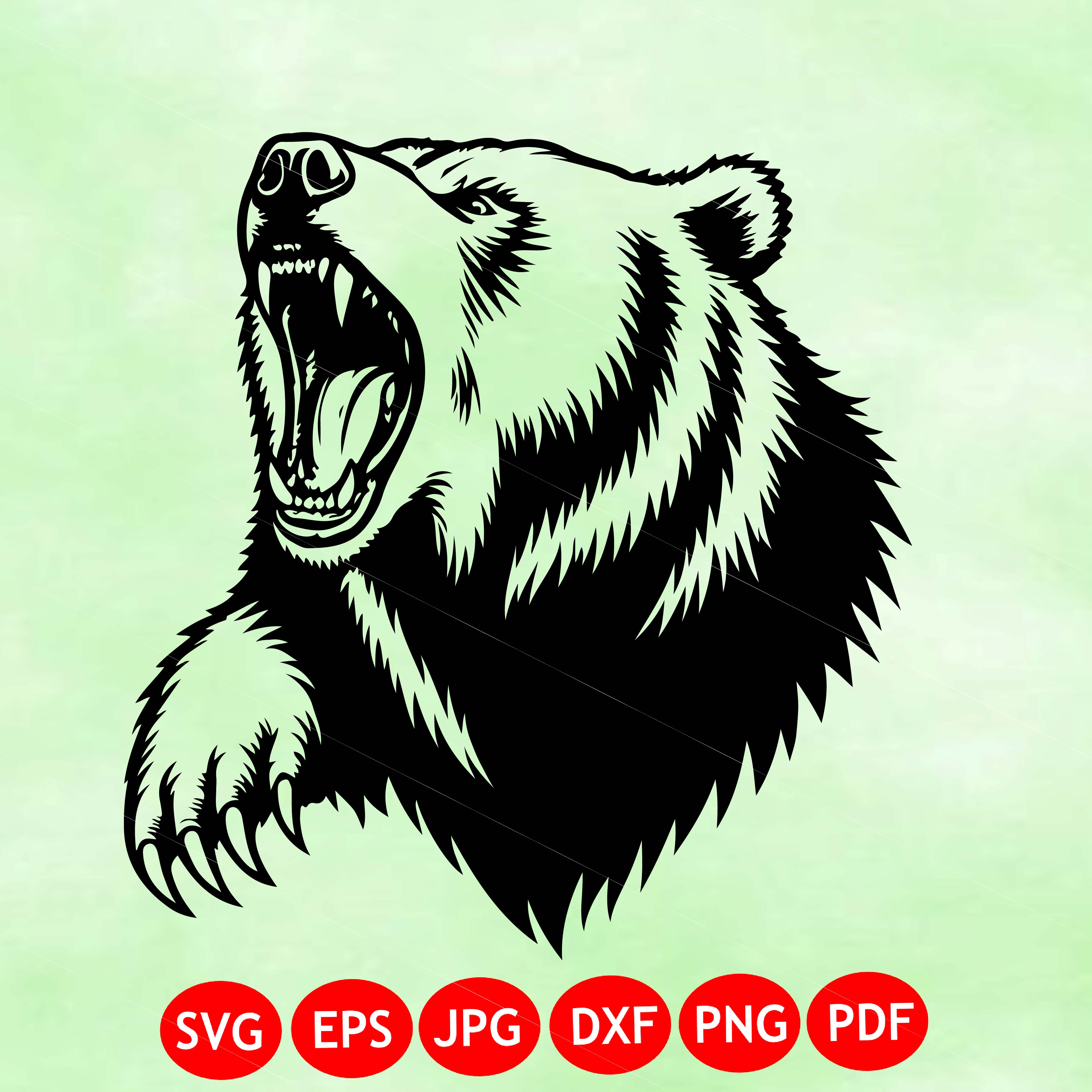 Angry bear svg - pdf - png - dxf - bear head - bear silhouette - commercial use - grizzly bear - hunting - clip art - instant download