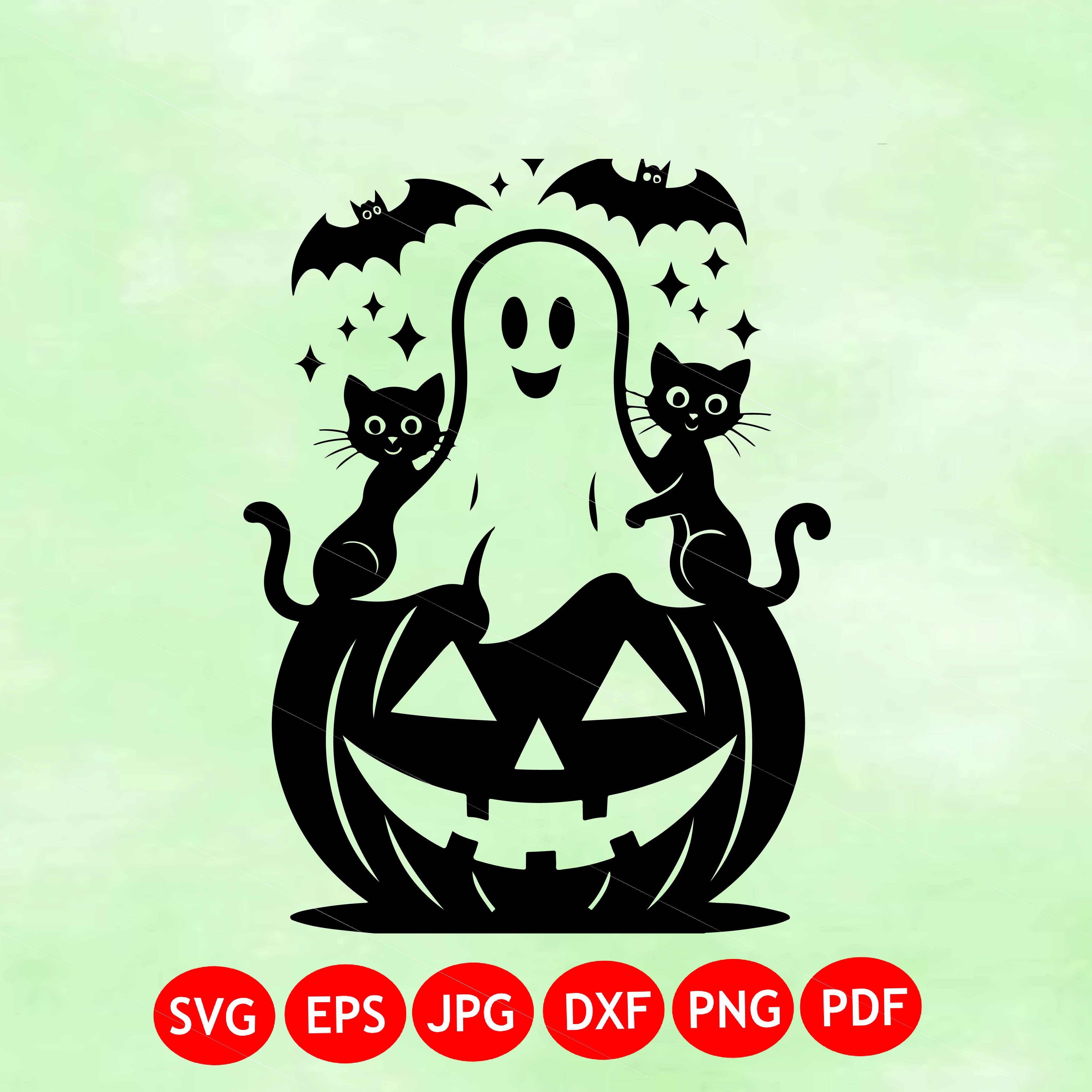 Ghost With Cats Svg, Halloween Cat Pumpkin Svg, Ghost Pumpkin Svg, Black Cat Svg, Spooky Season Svg, October Svg, Autumn Svg