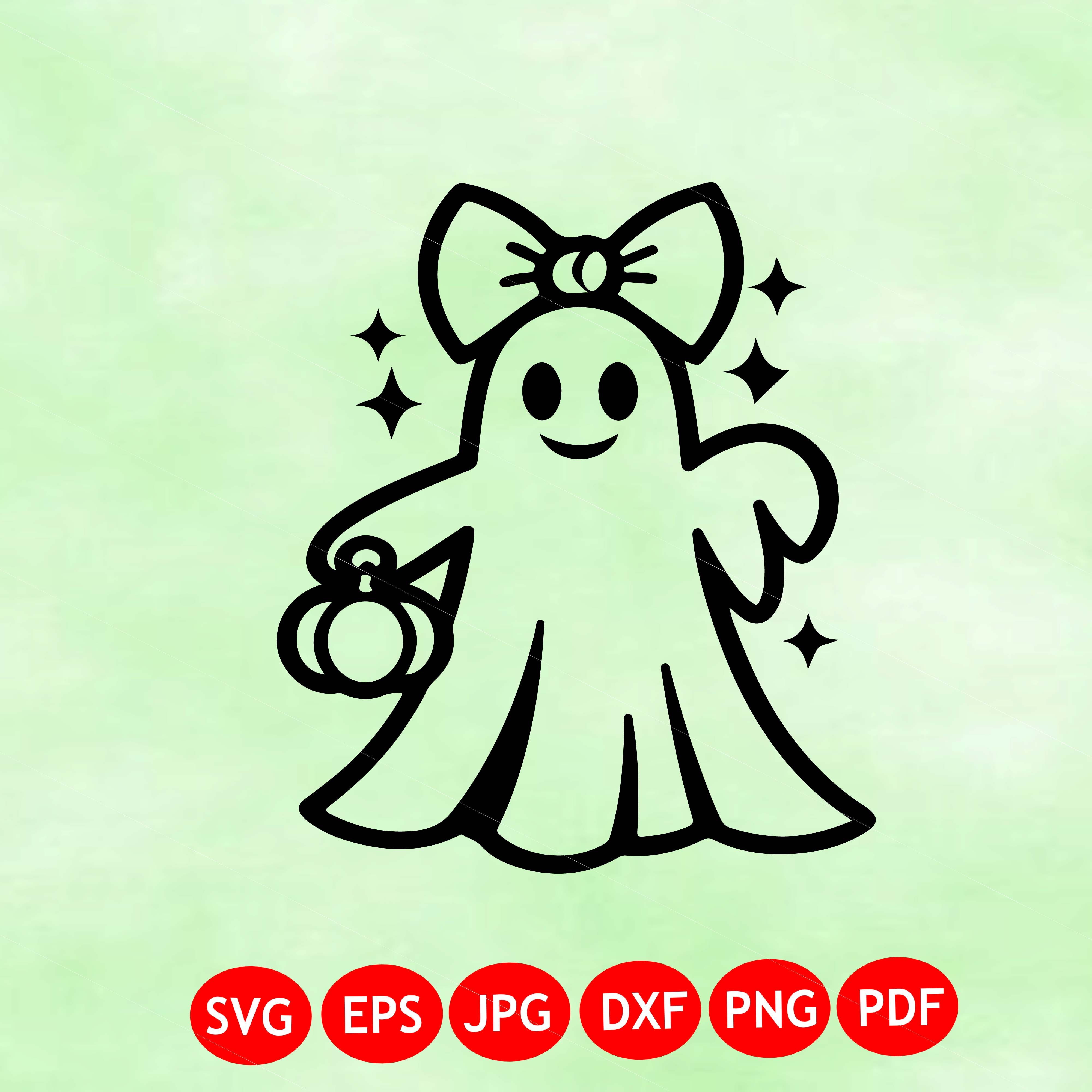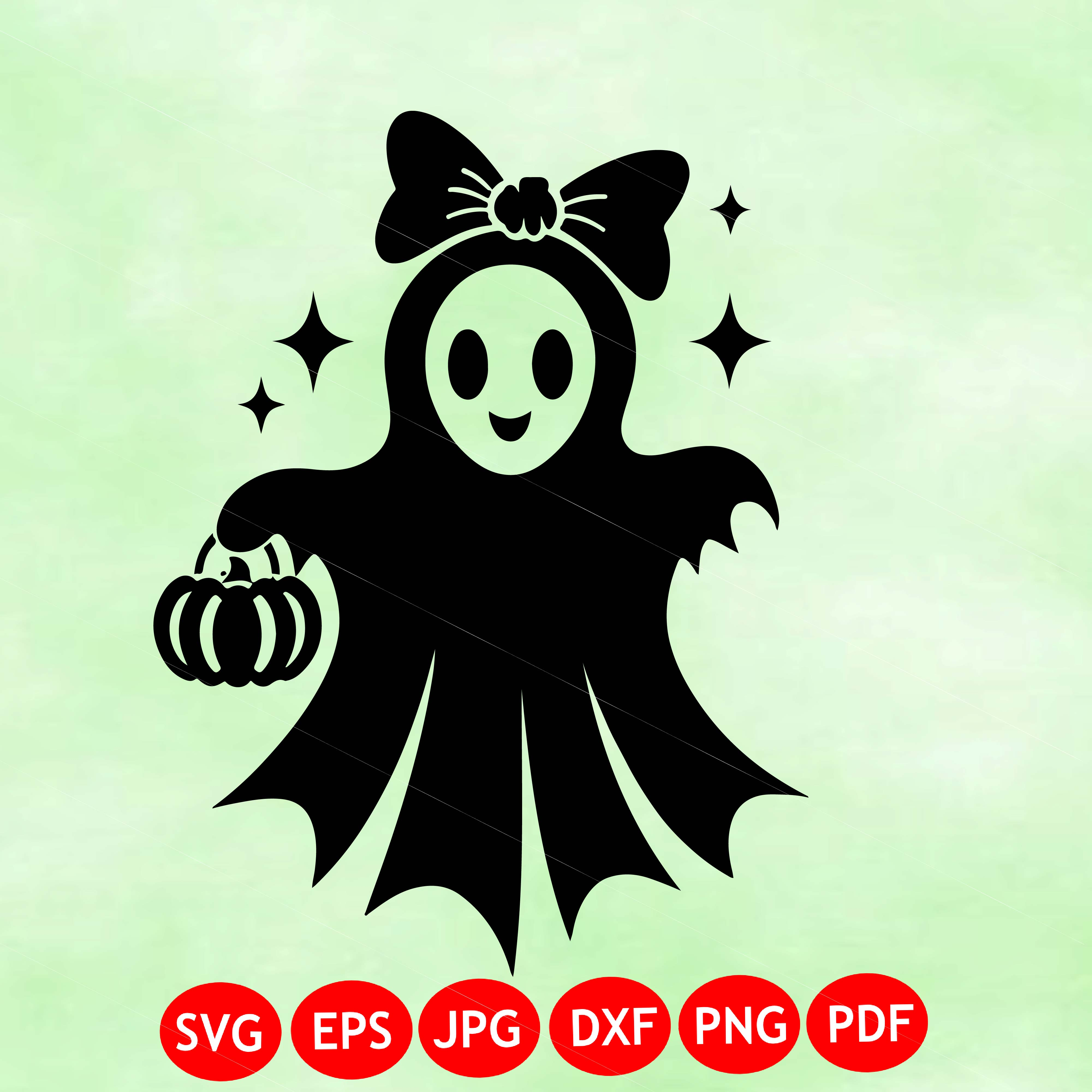 Halloween Ghost Svg, Ghost With Bow Svg, Ghost Holding Pumpkin Svg, Trick Or Treat Ghost Svg, Halloween Costume Svg, Ghost Girl Svg