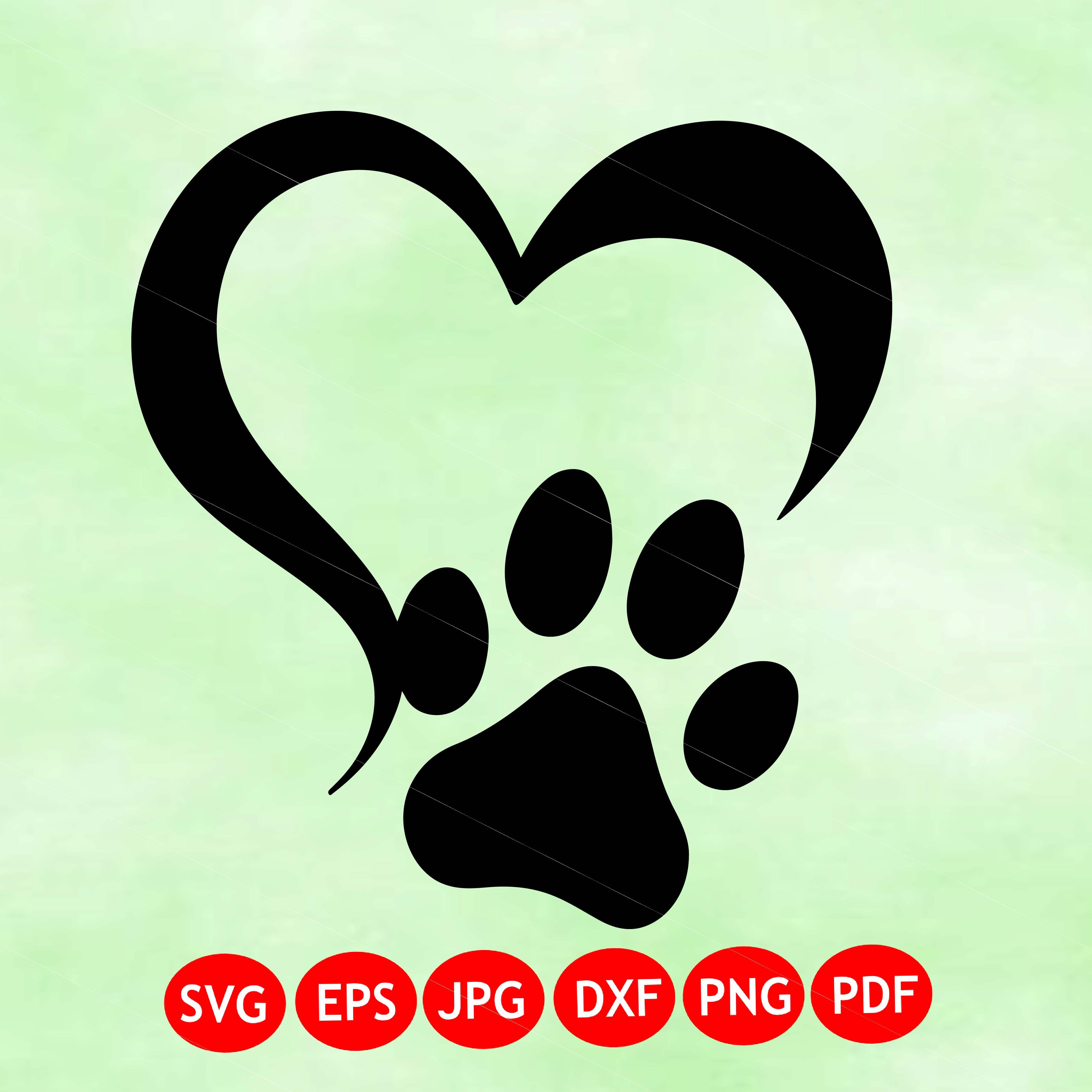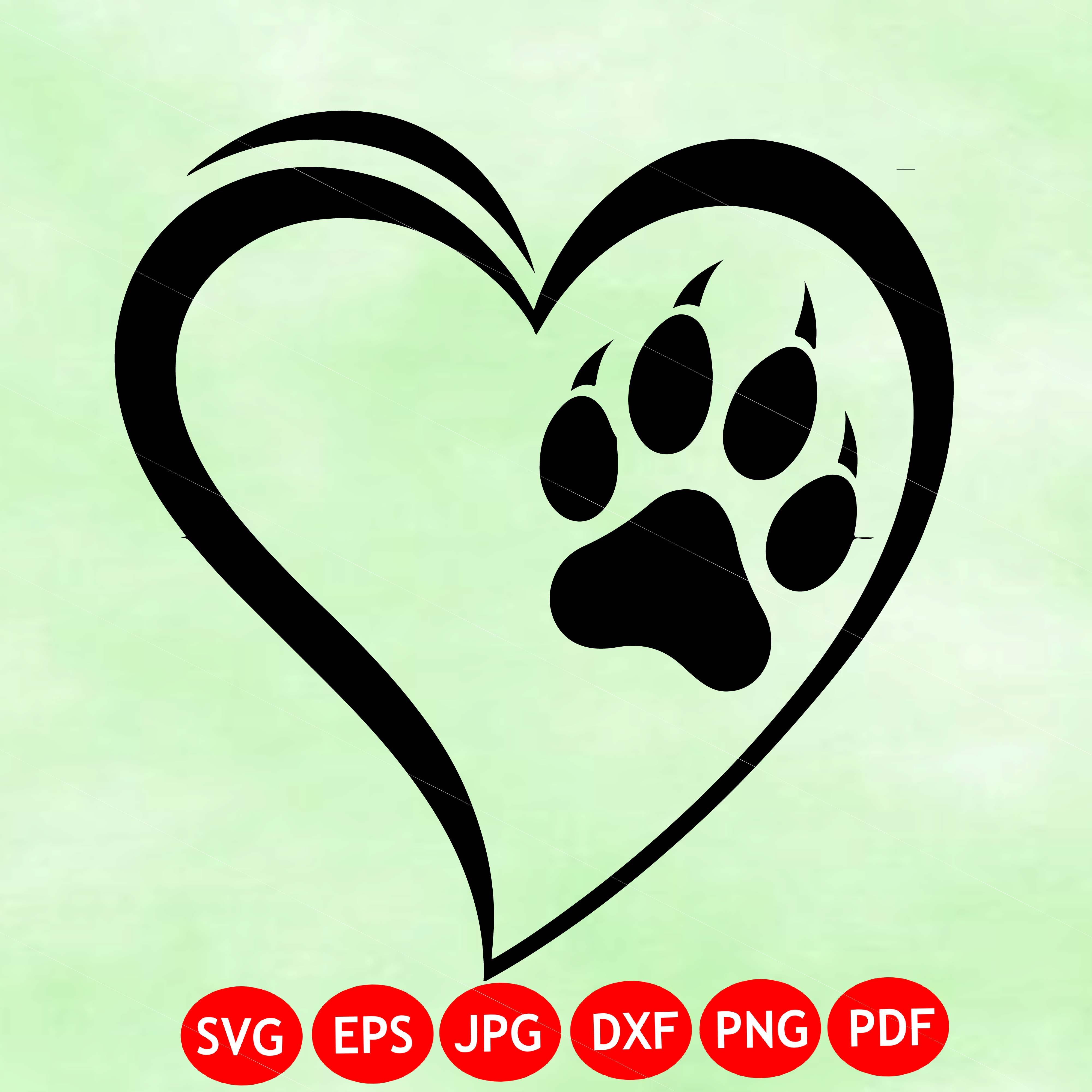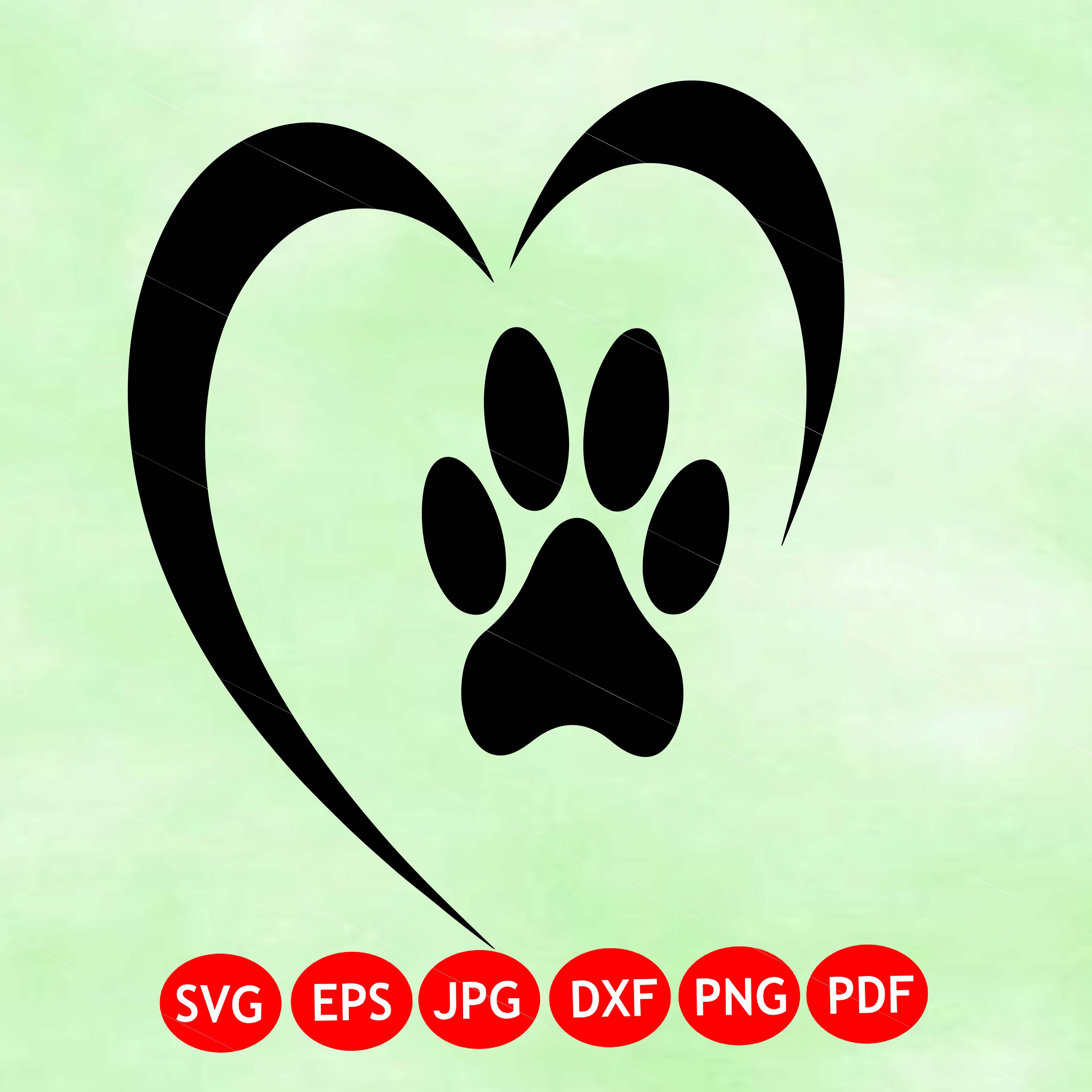 Paw Print Heart - Instant Digital Download - svg, png, dxf, and eps files included! Dog, Cat