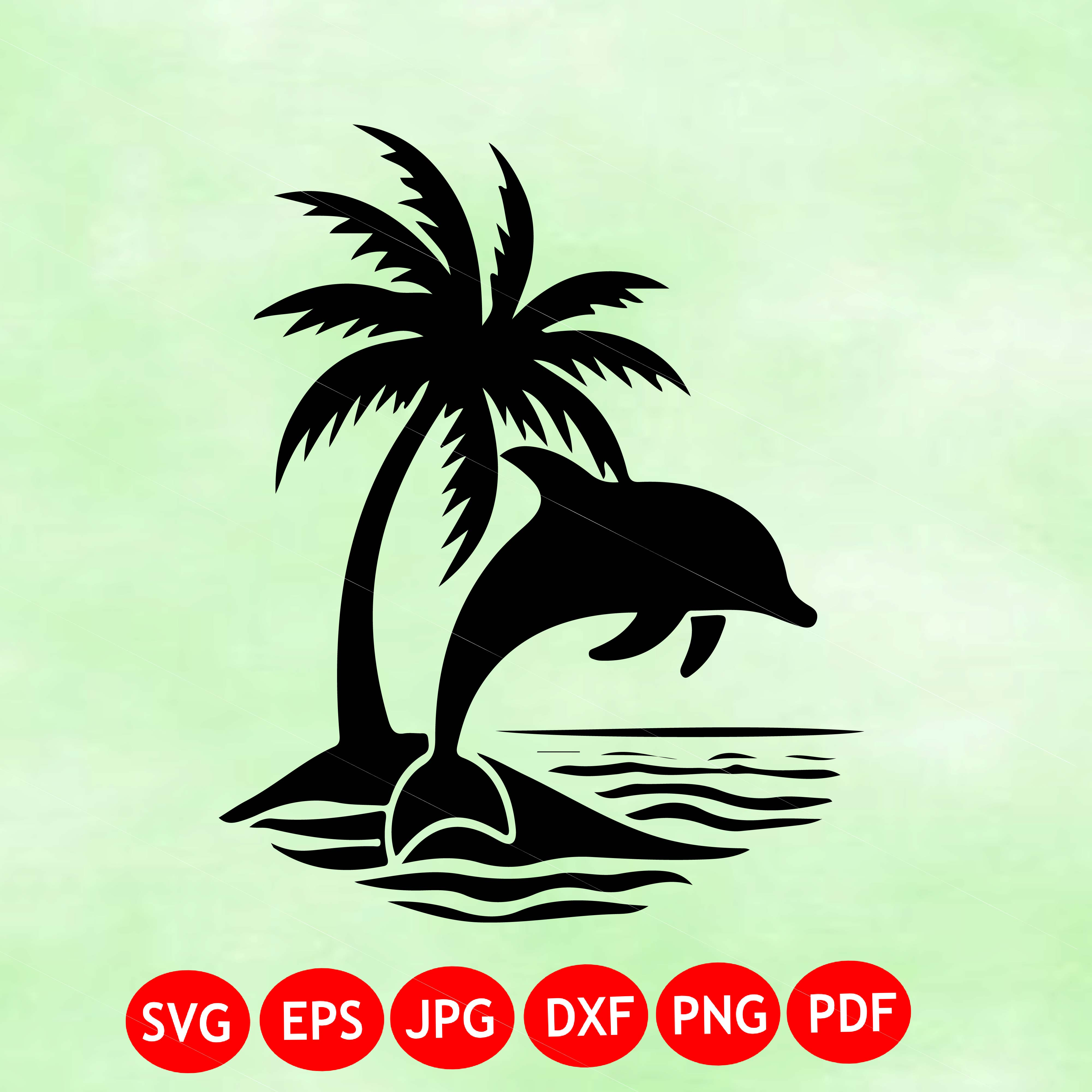 Dolphin SVG, PNG, EPS, Tropical, Beach Sunset Palm trees, Digital Download, Dolphin Silhouette, Svg files for Cricut, Jumping Dolphins