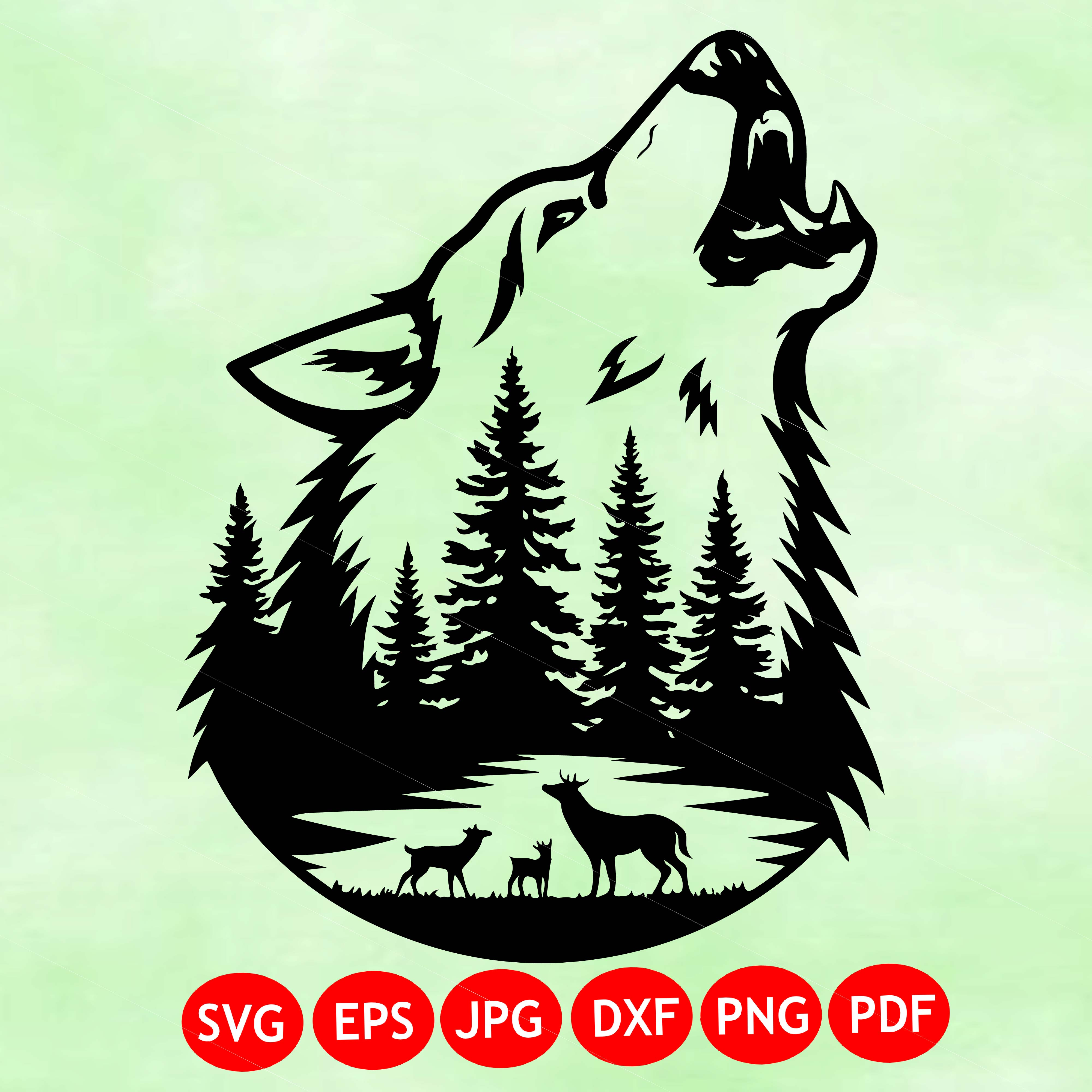 Howling Wolf Svg, Wolf Head Svg, Wild Animal Svg, Wolf Clipart Svg, Forest Svg