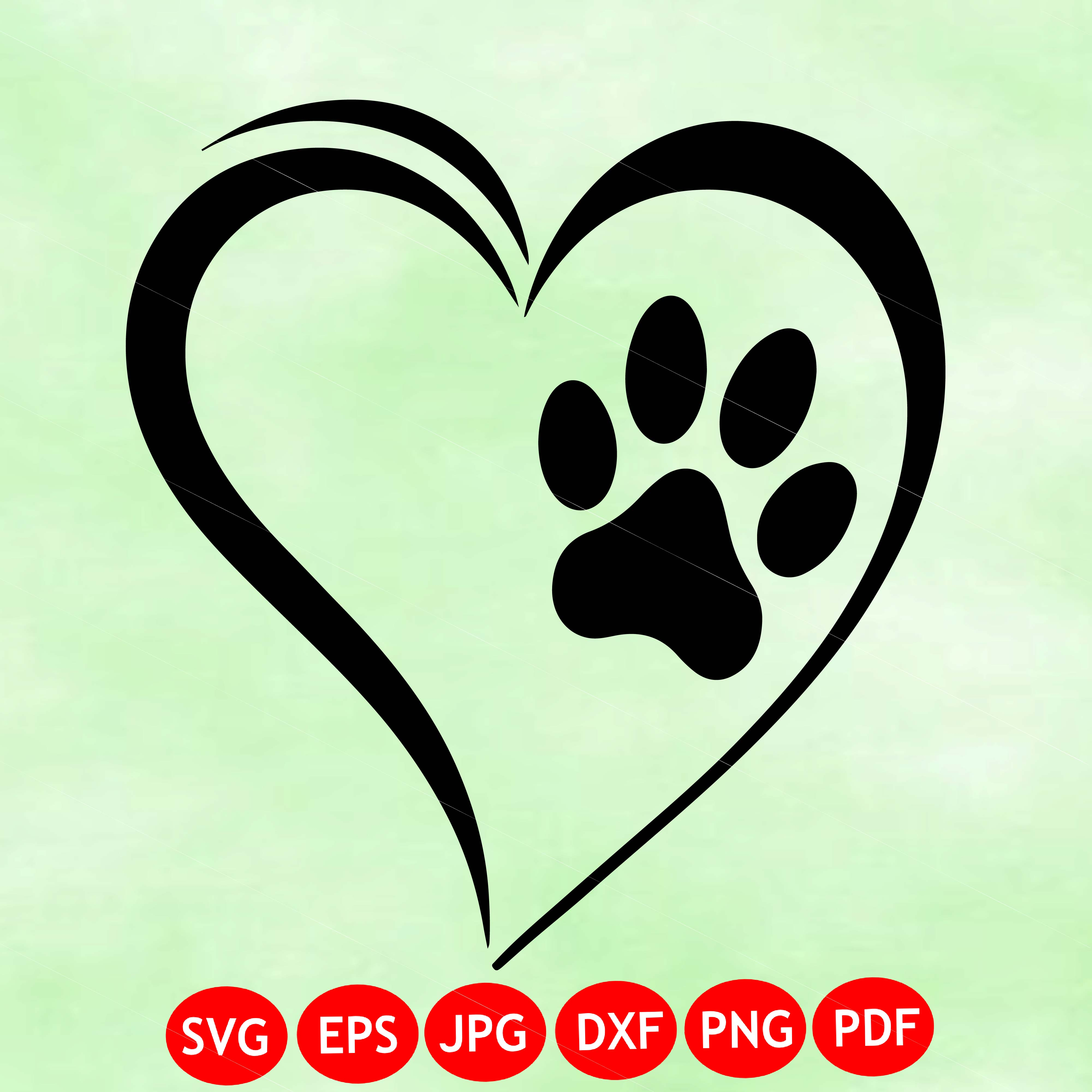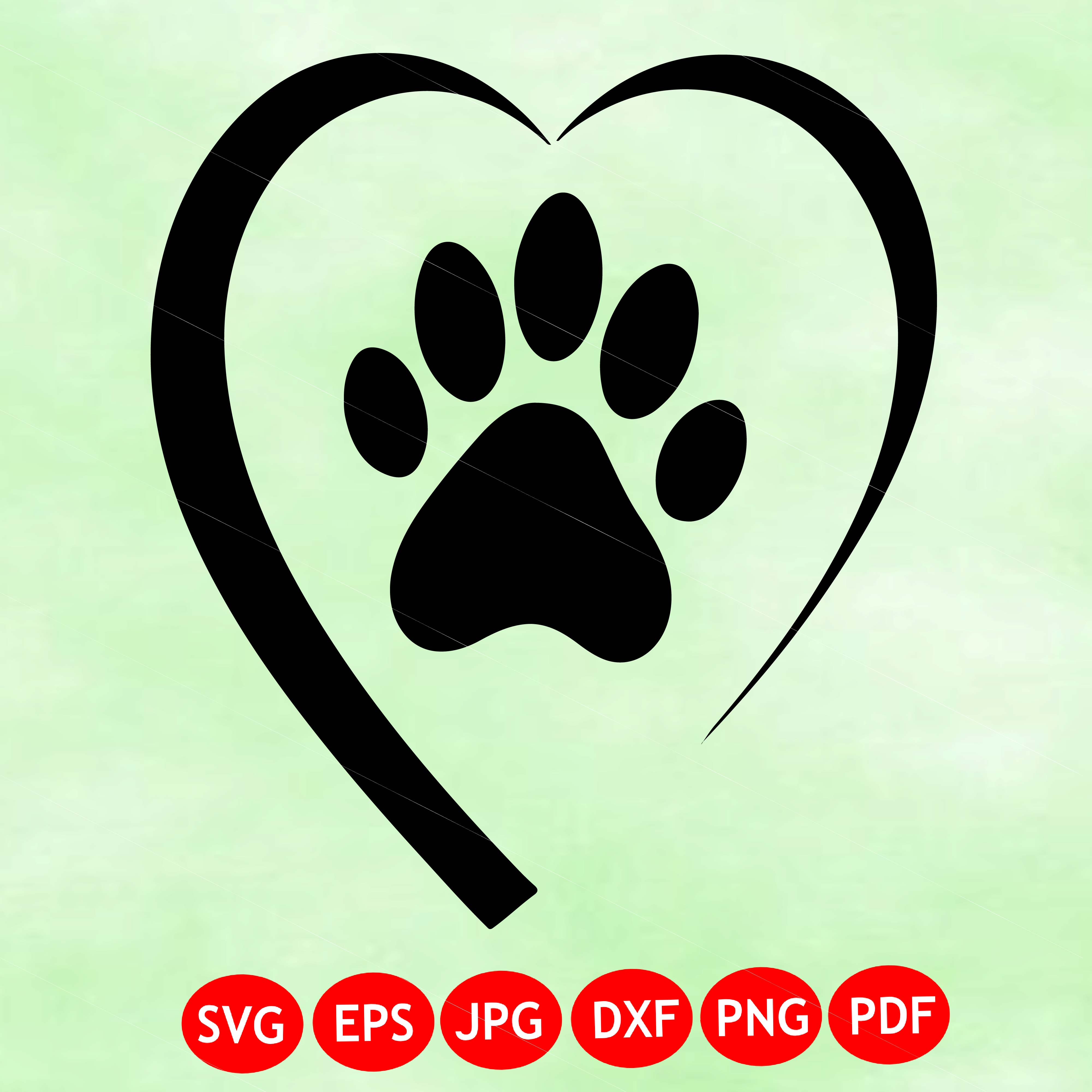 Heart on Paw Print Svg, Dog Paw Print Svg, Dog Lover. Cut File Cricut, Silhouette, Pdf Png Eps Dxf, Vector, Decal, Vinyl, Stencil, Sticker.