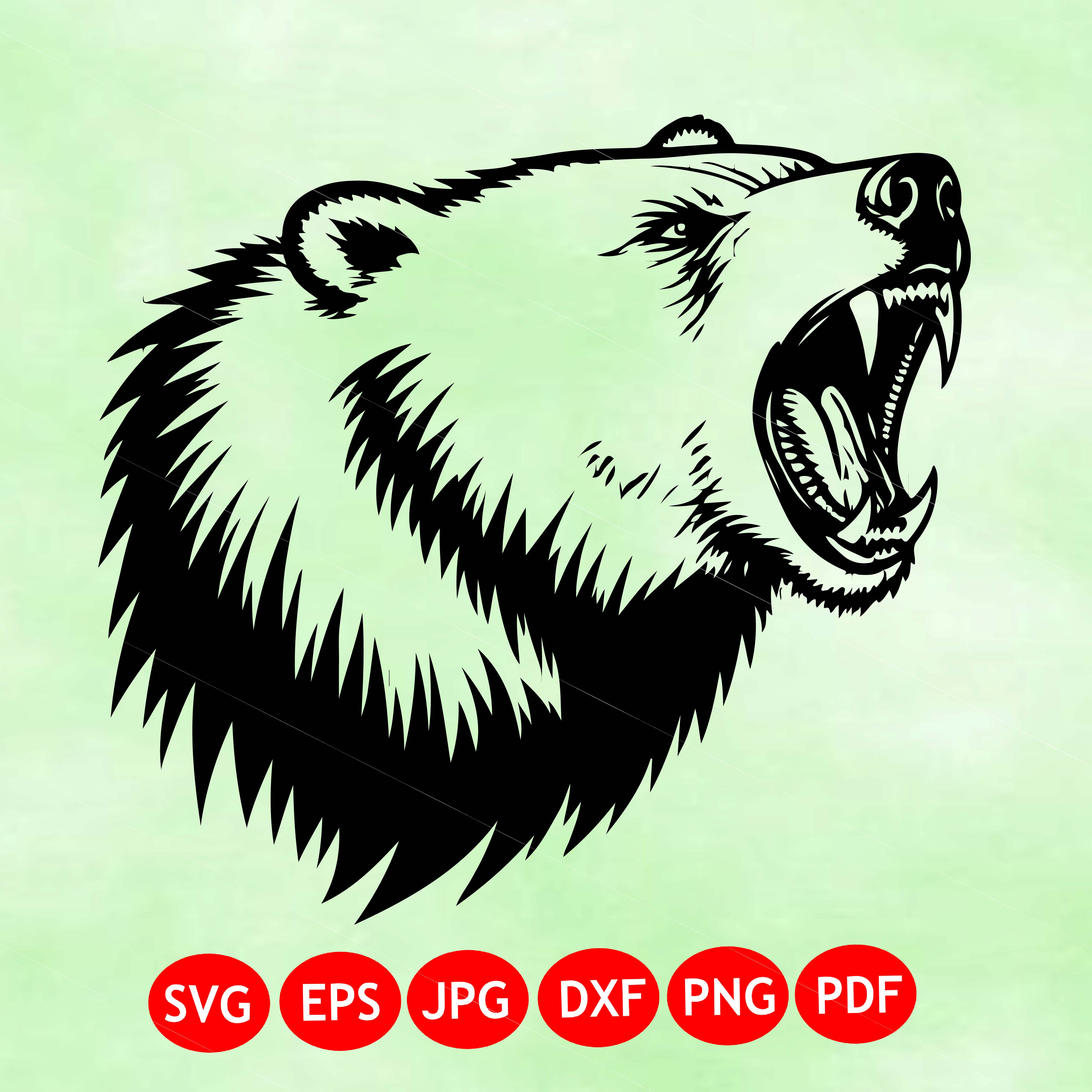Angry bear svg - pdf - png - dxf - bear head - bear silhouette - commercial use - grizzly bear - hunting - clip art - instant download