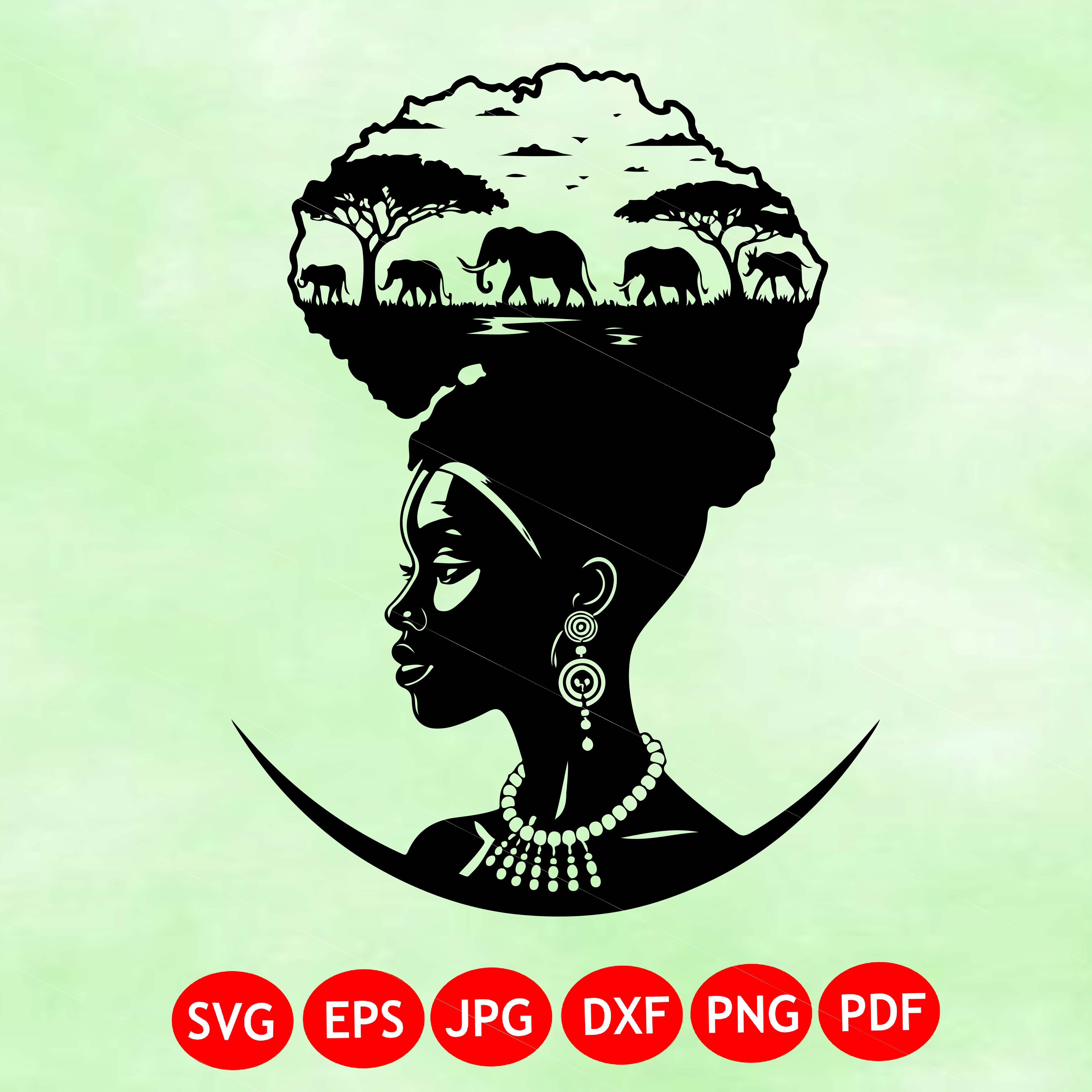 Africa Woman Svg, African Map Svg, Afro Lady Svg, Headwrap Woman Svg, Africa Outline Svg, Dxf Png Eps Pdf Jpg