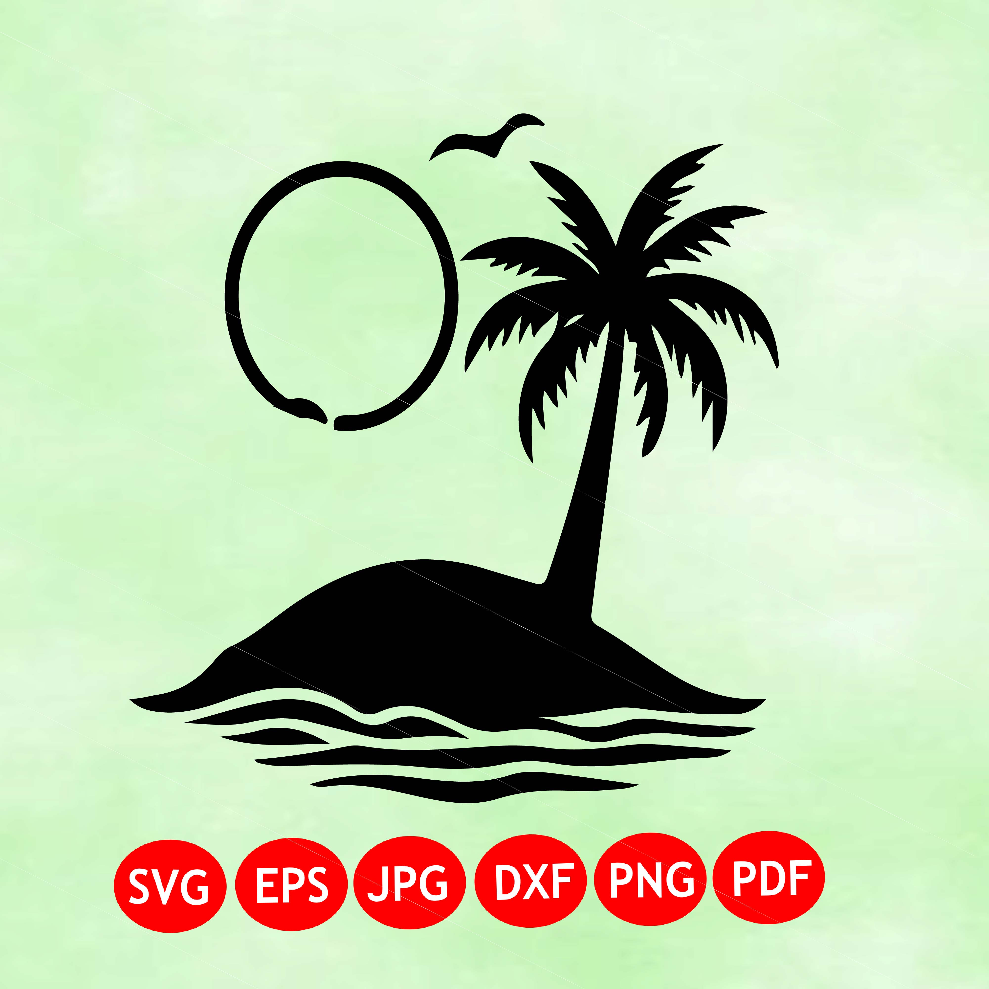 Beach Sunset SVG – Tropical Summer File, Palm Tree Sunset SVG for Cricut, Ocean Vacation Clipart, Coastal Digital Download