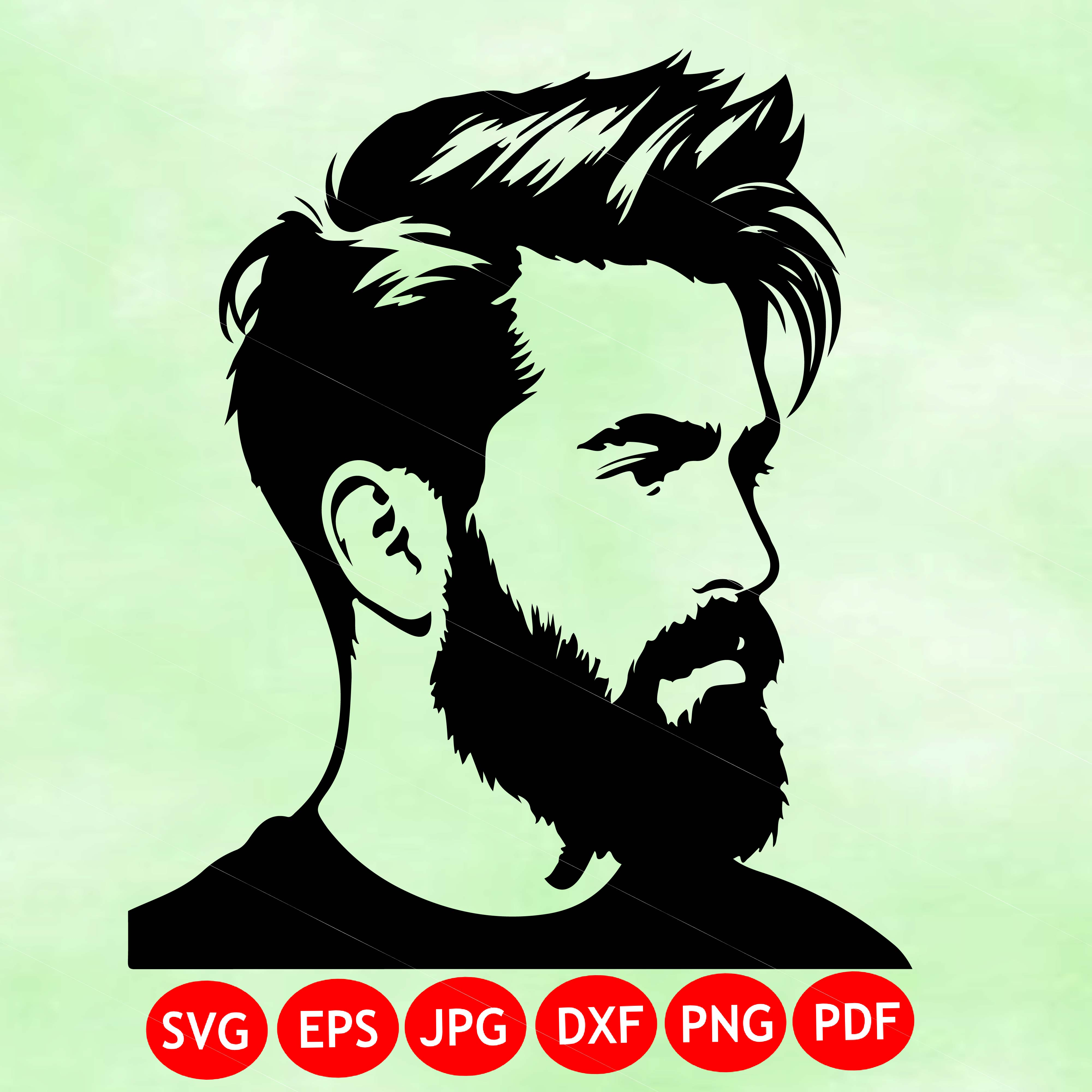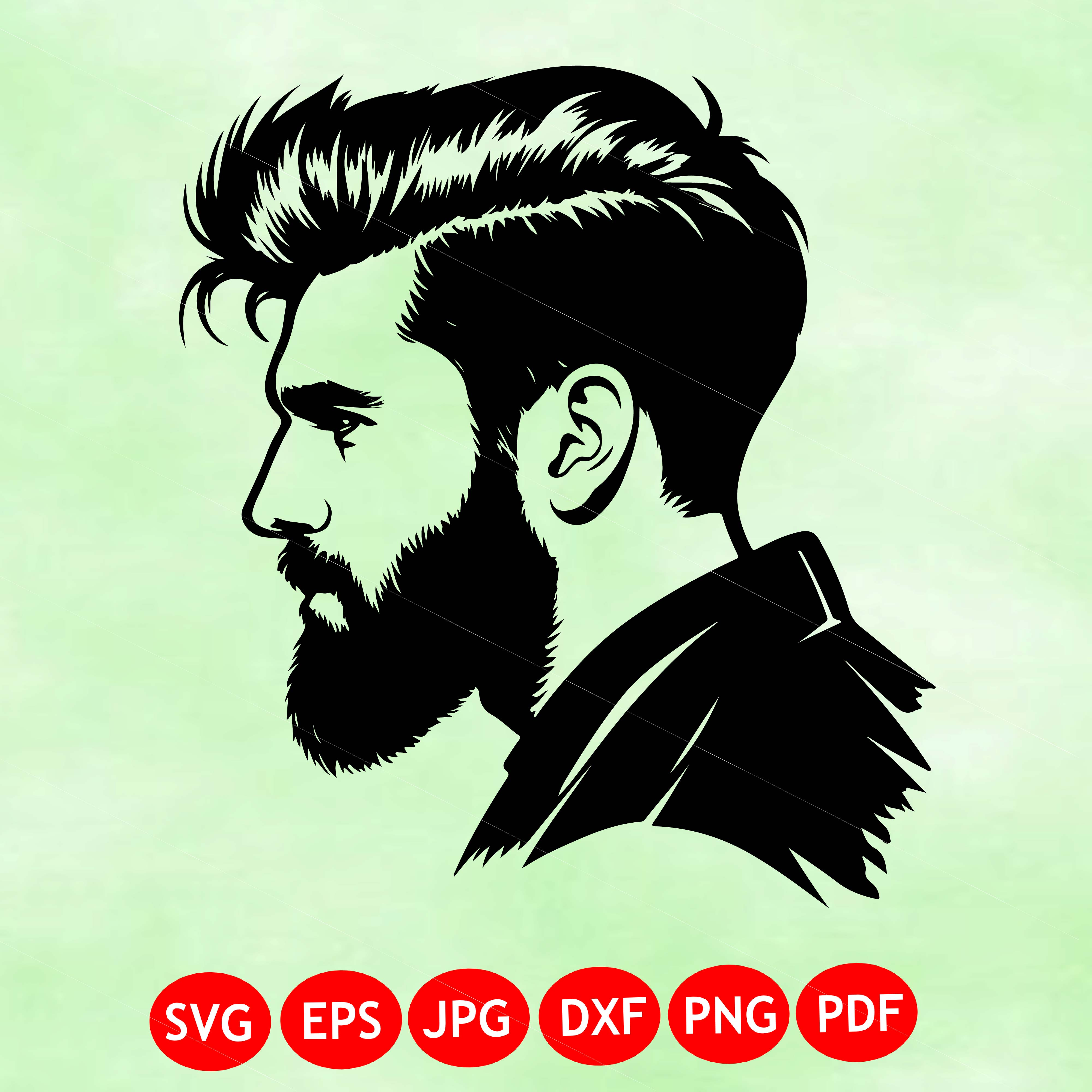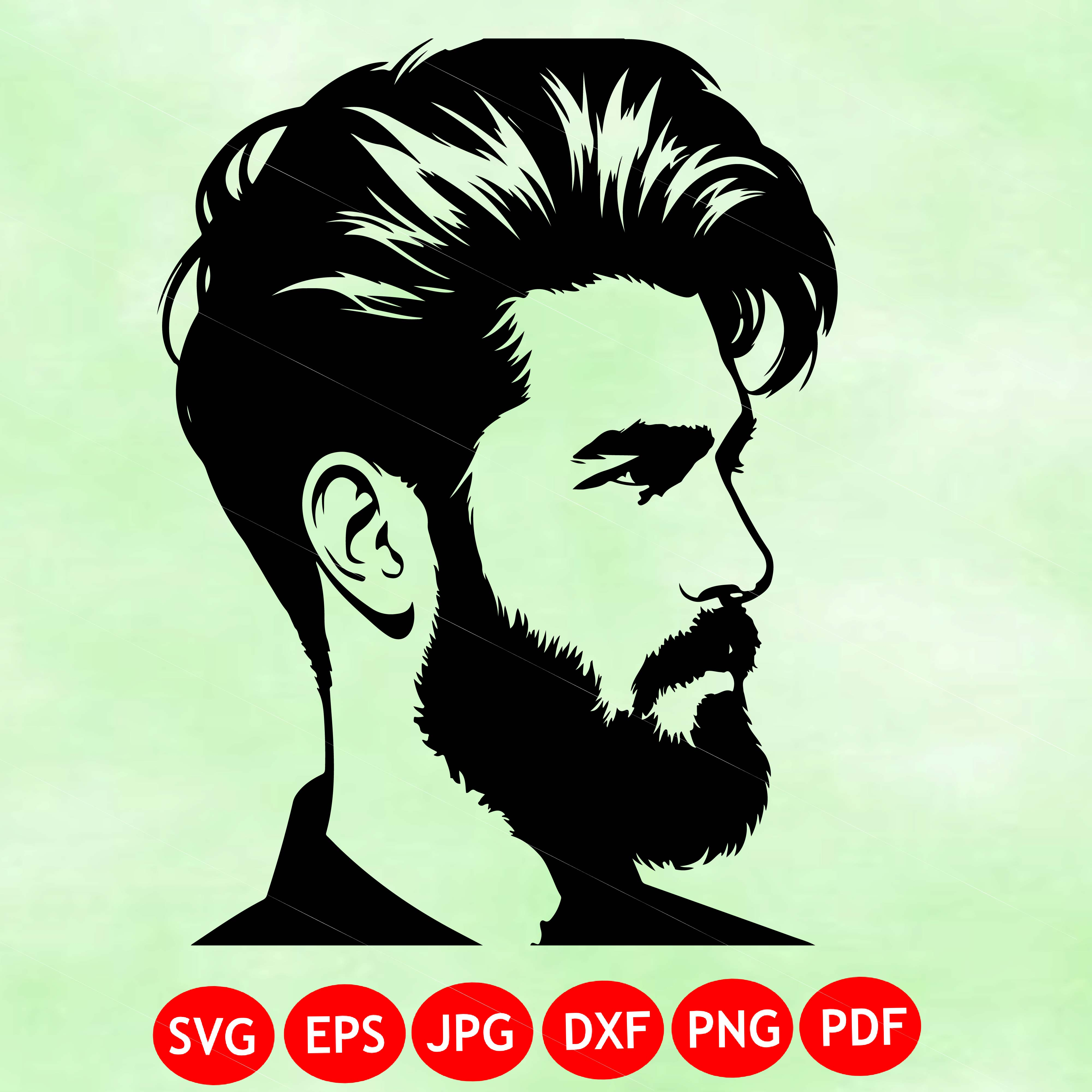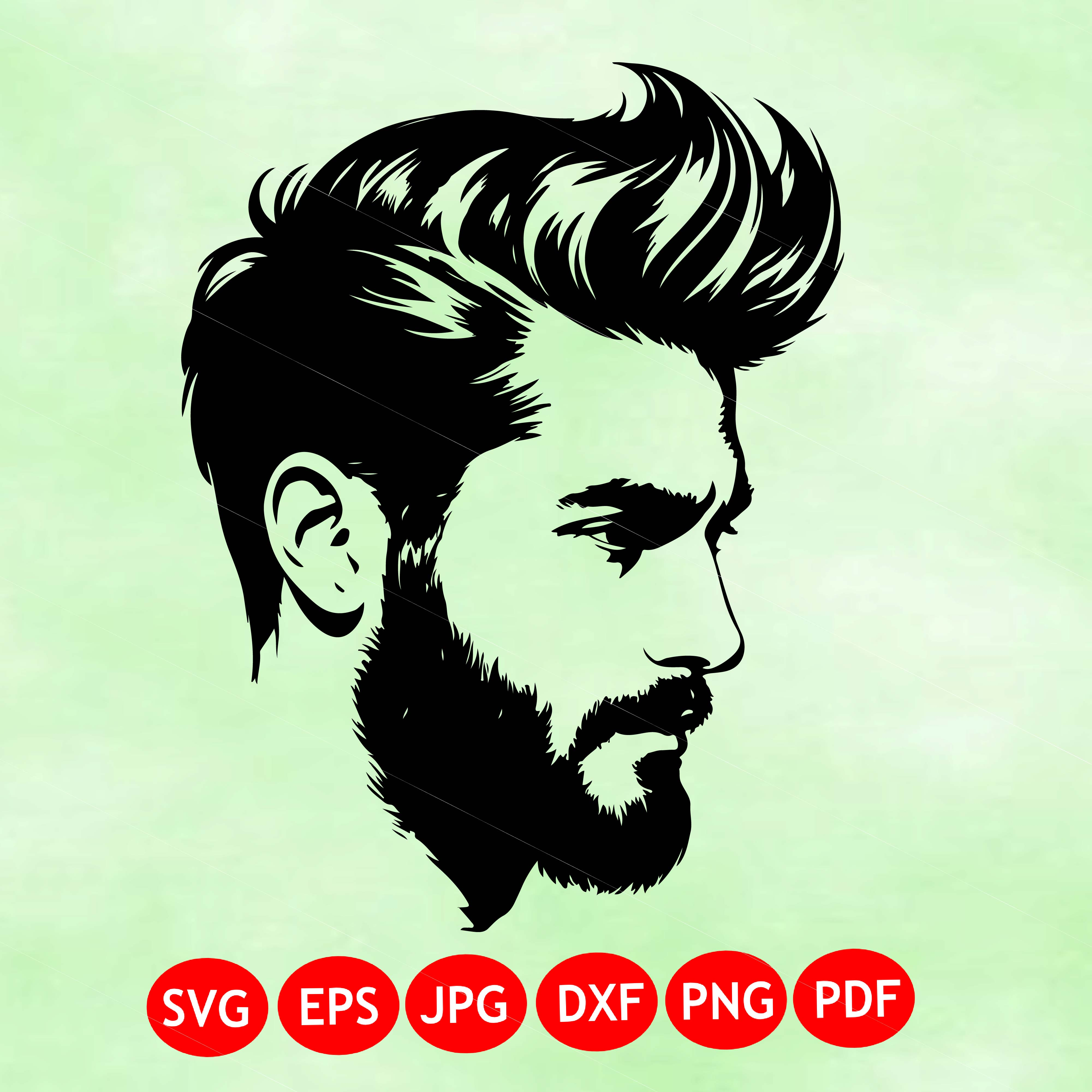 Bearded Man Face SVG PNG Ai PDF Vector Design, Hipster Man Head Silhouette Clipart, Beard and Hair Cut File for Cricut and Sublimation