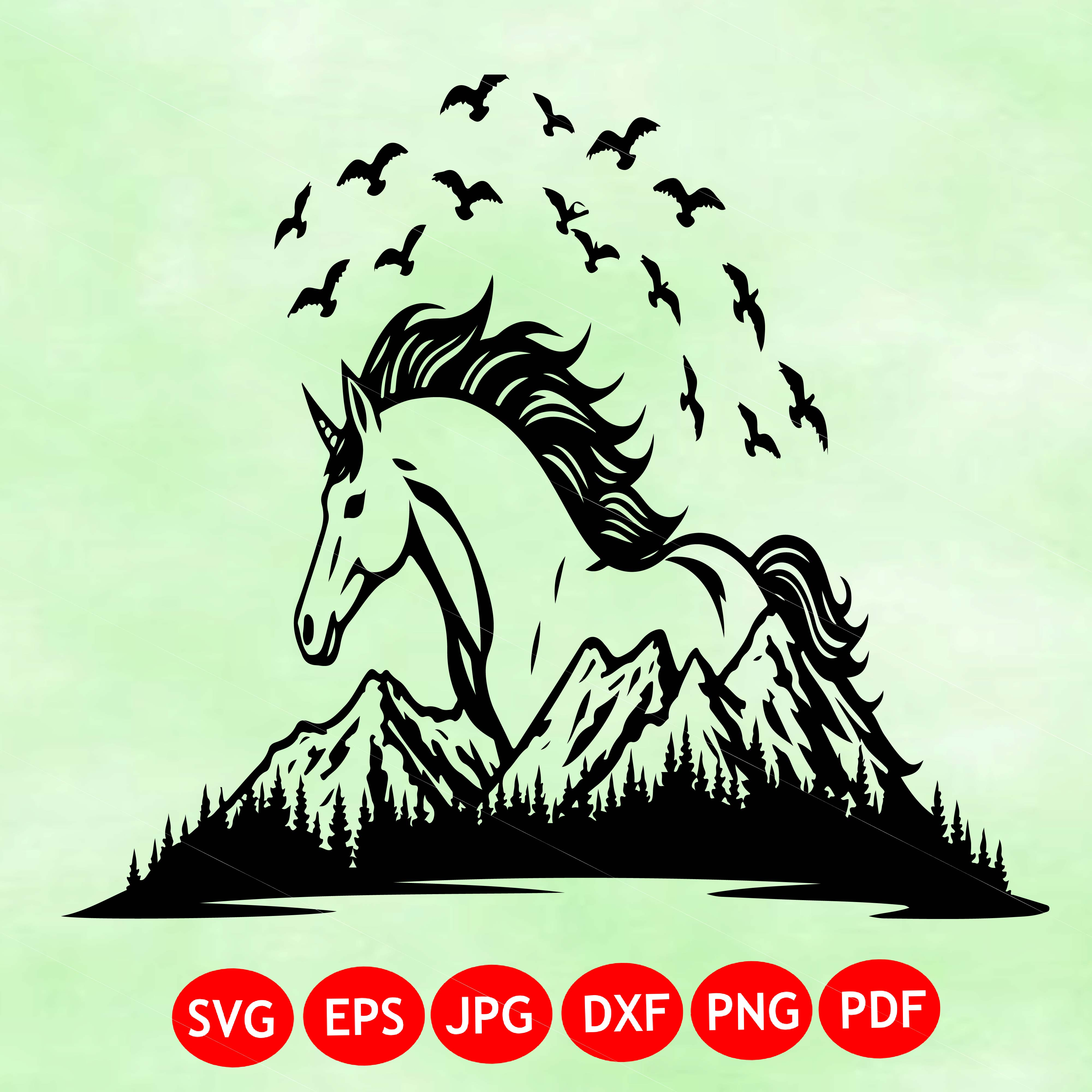 Horse Mountain Forest SVG, Horse Head Svg, Horse Mountain Landscape Silhouette SVG PNG Clipart Cut Files