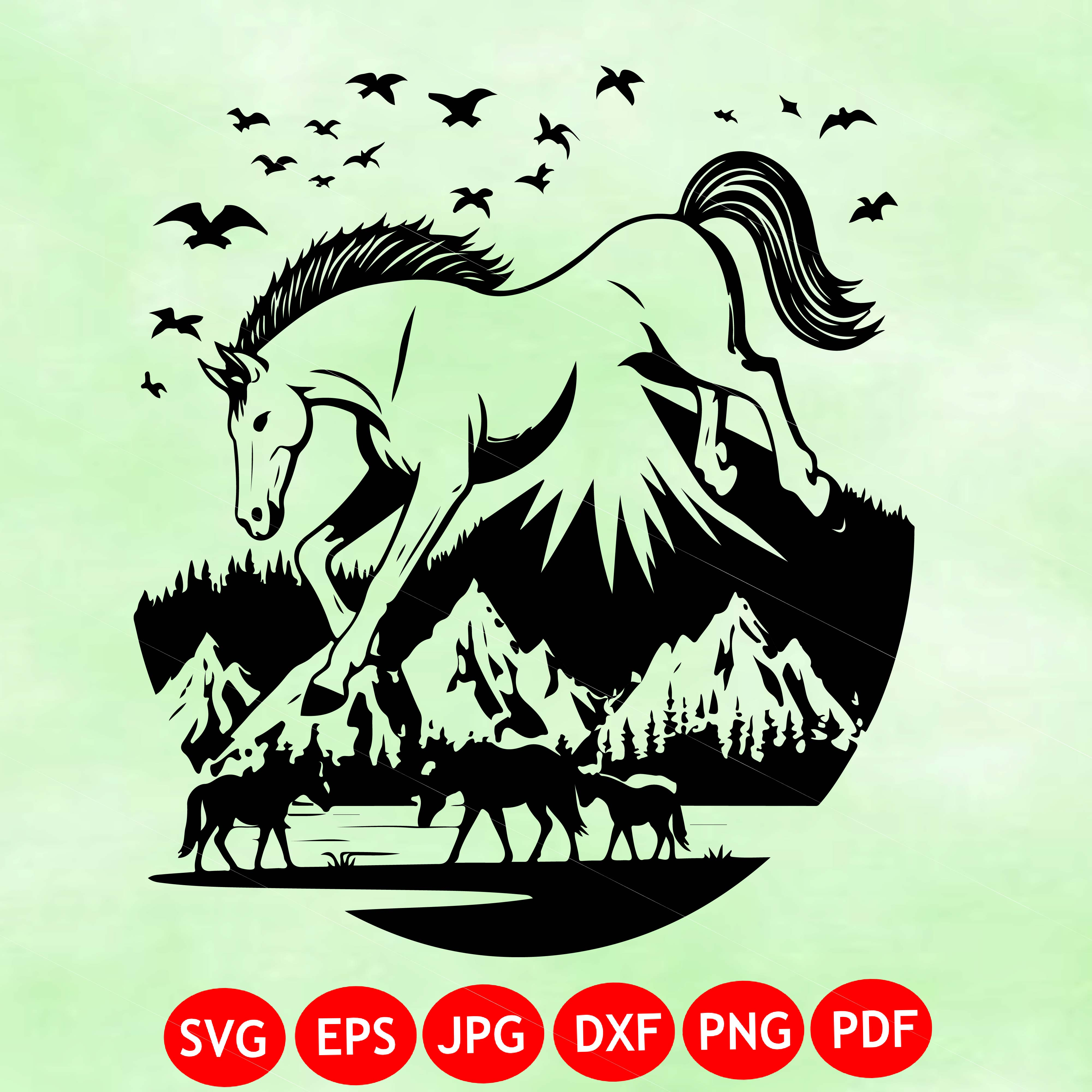 Horse SVG, Mountain SVG, Forest SVG, Running Horses Nature Scenery svg for Shirt, Decal, Tumbler, Cricut, Silhouette, Cut File